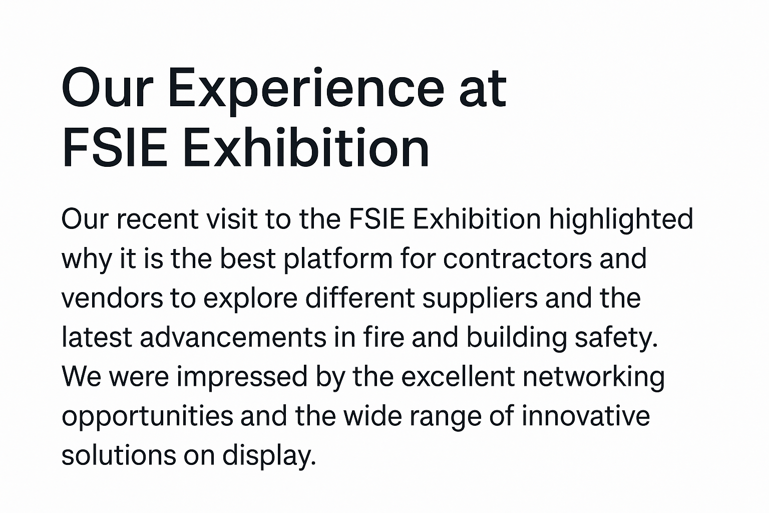 From eco-friendly suppression systems to smart monitoring platforms, FSIE showcases how technology is transforming fire safety. Contractors can learn about solutions that are not only effective but also cost-efficient and sustainable. -